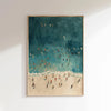 Minimalist summer design – tiny people swimming in a serene ocean scene